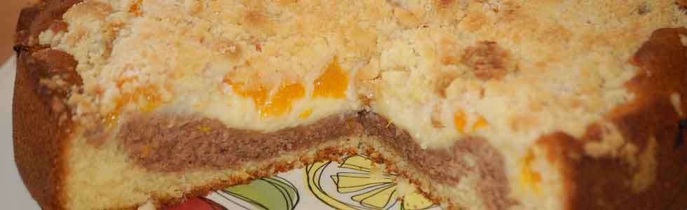 Käsekuchen mit knsuprigen Rhabarber-Kompott